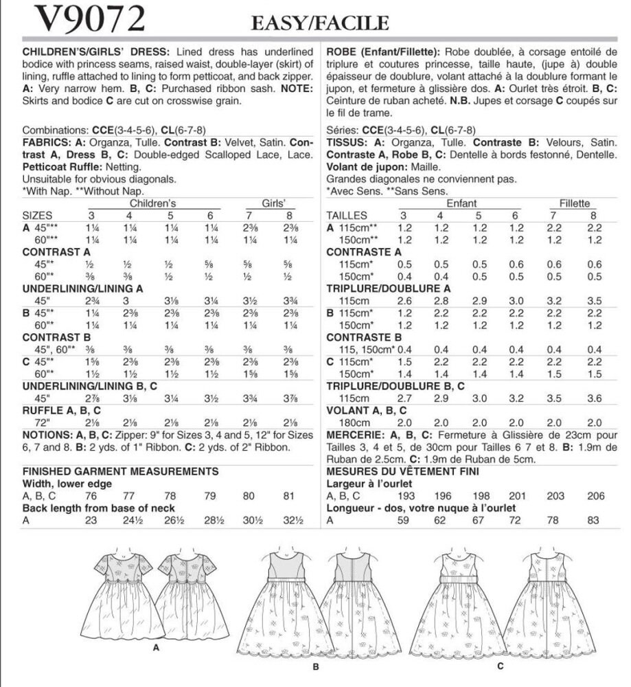 Uncut Vogue Sewing Pattern 9072 Girl S Lined Party Flower Etsy