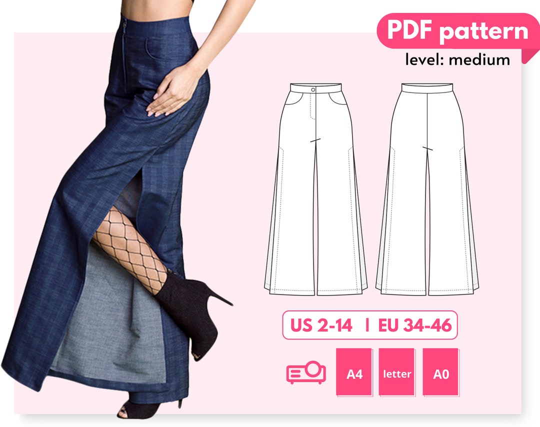 Anne Split Side Wide Leg Pants Sewing Pattern 34 36 38 40 42 Etsy Australia